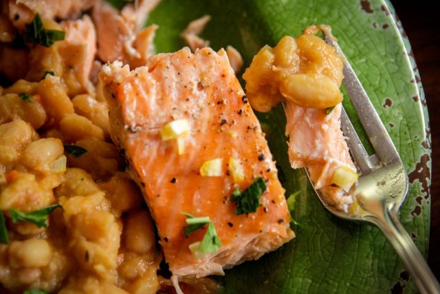 Roasted Salmon with Stewed White Beans & Preserved Lemon