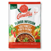Our Southwest Pinto Beans Flavor Infusion blends bold chili flavor, warm cumin, and vibrant vegetables for a flavor-packed pot of beans. Whether you’re an experienced cook or a novice in the kitchen, you can serve up bright, satisfying Southwest flavor with ease.